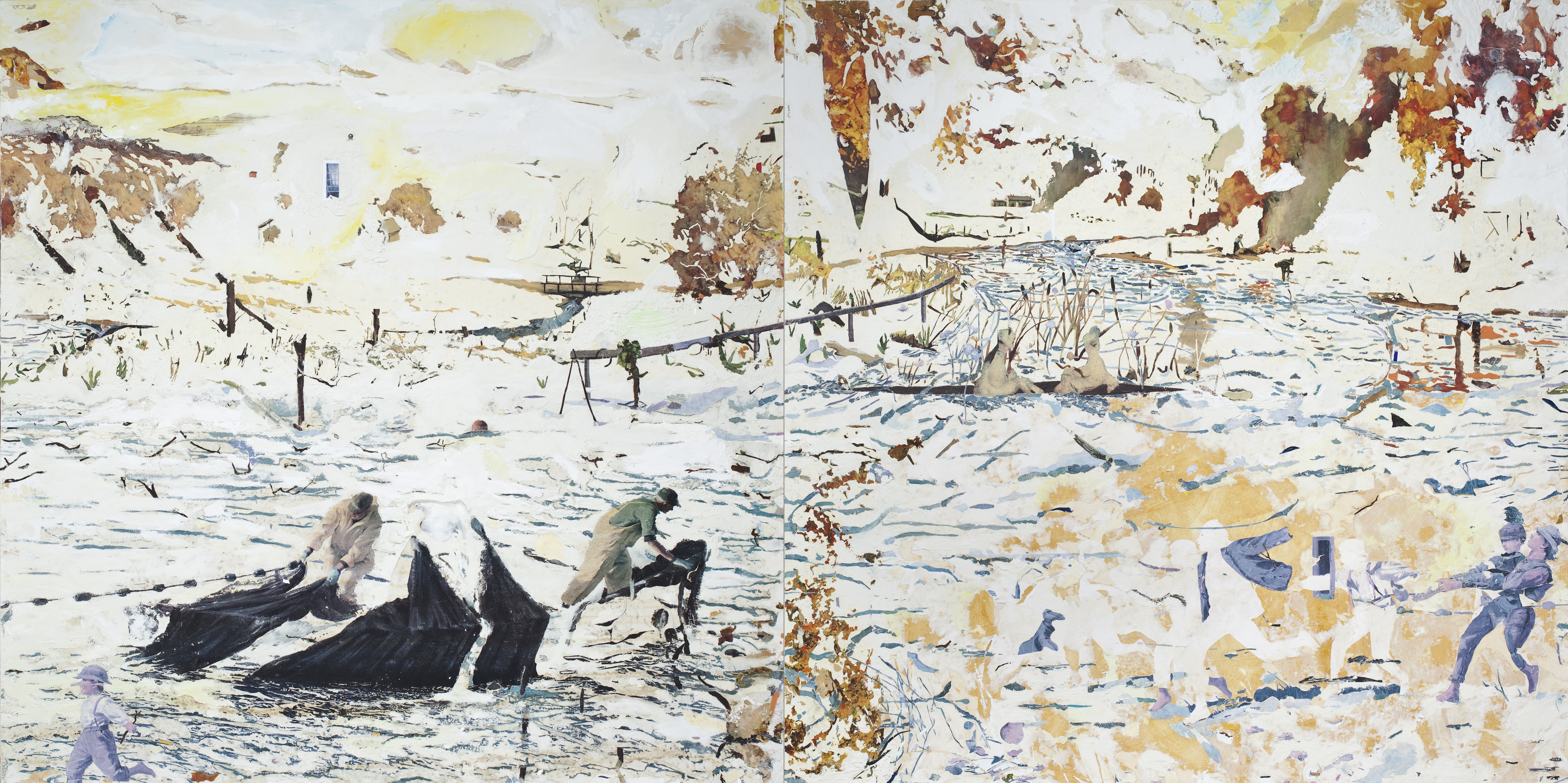 48″ x 84″, found images on paper, cut, peeled and repurposed on diptych panel, 2009