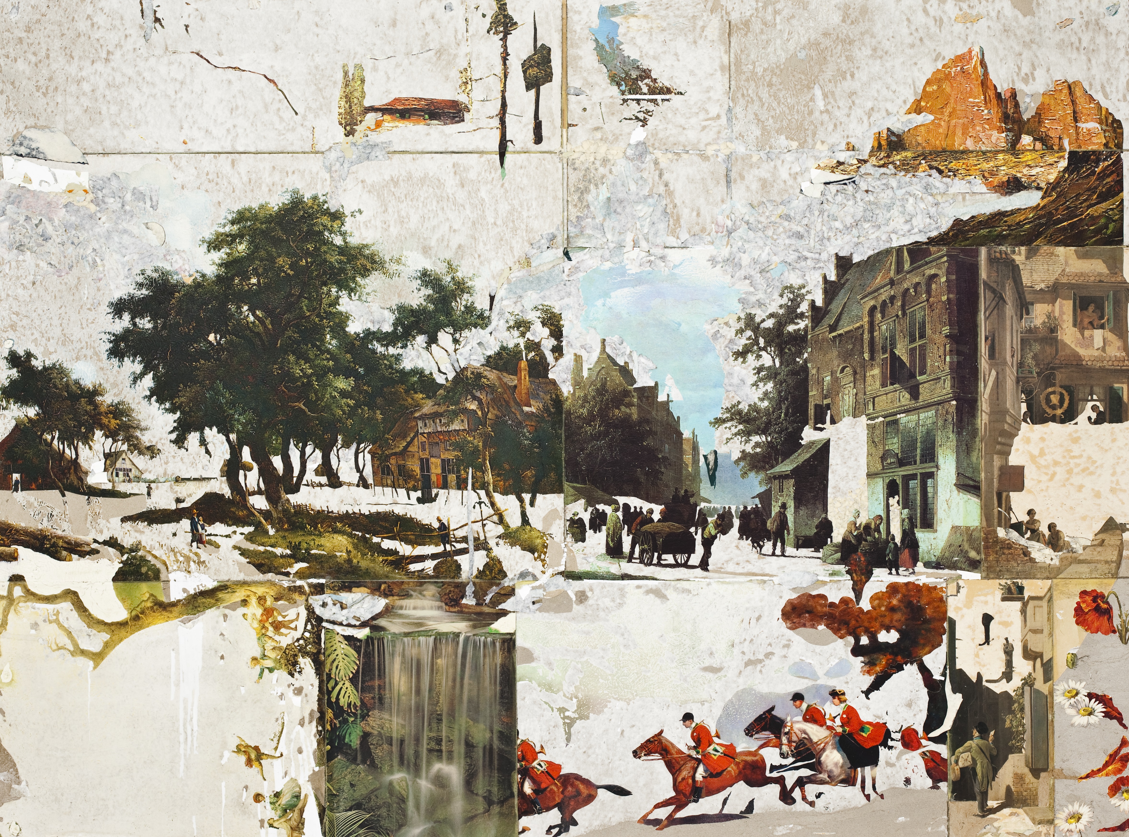 36″ x 48″, found images on paper, cut, peeled and repurposed, on panel, 2008