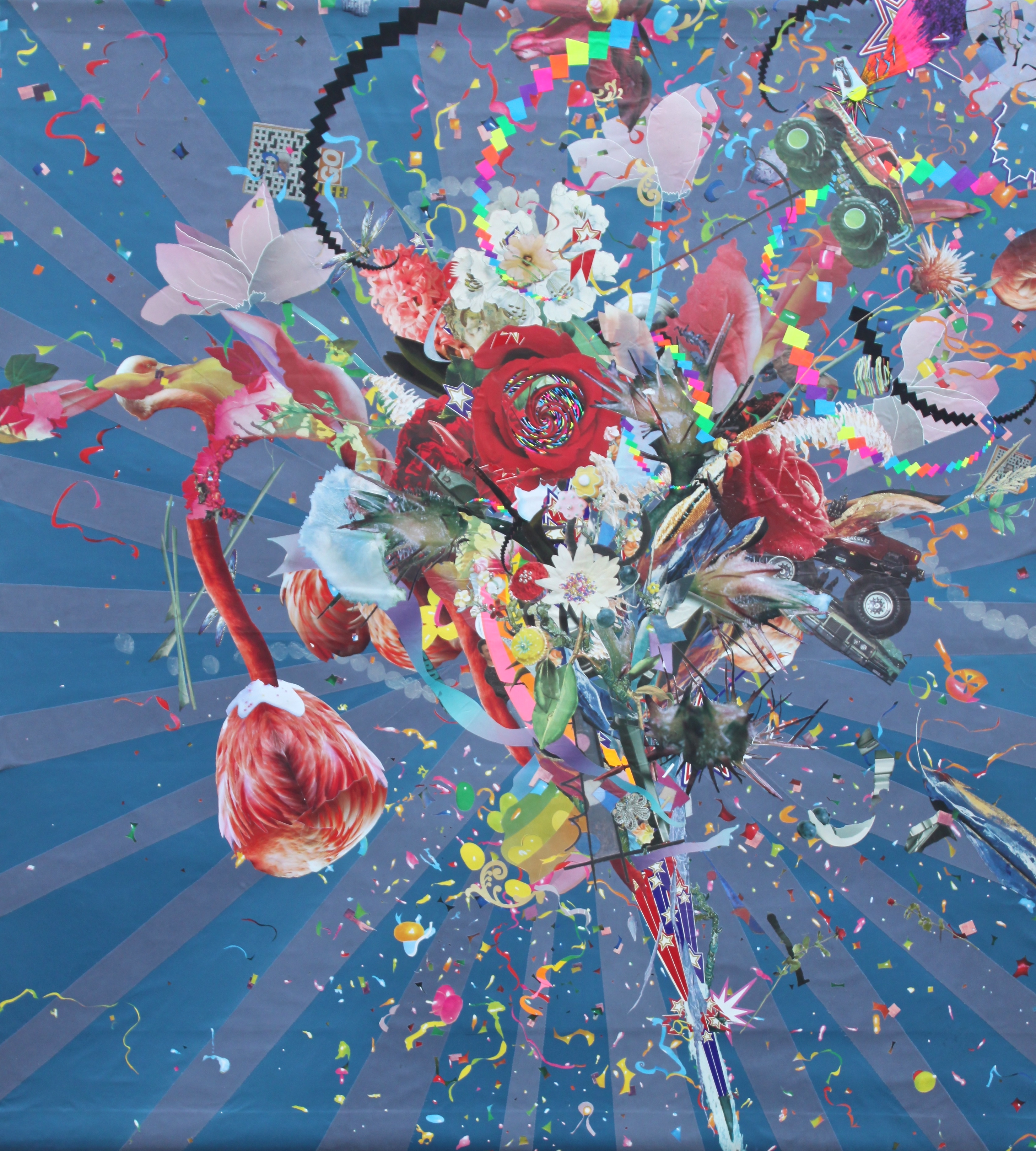 9′ x 8′, cut fabric and paper on canvas, 2014