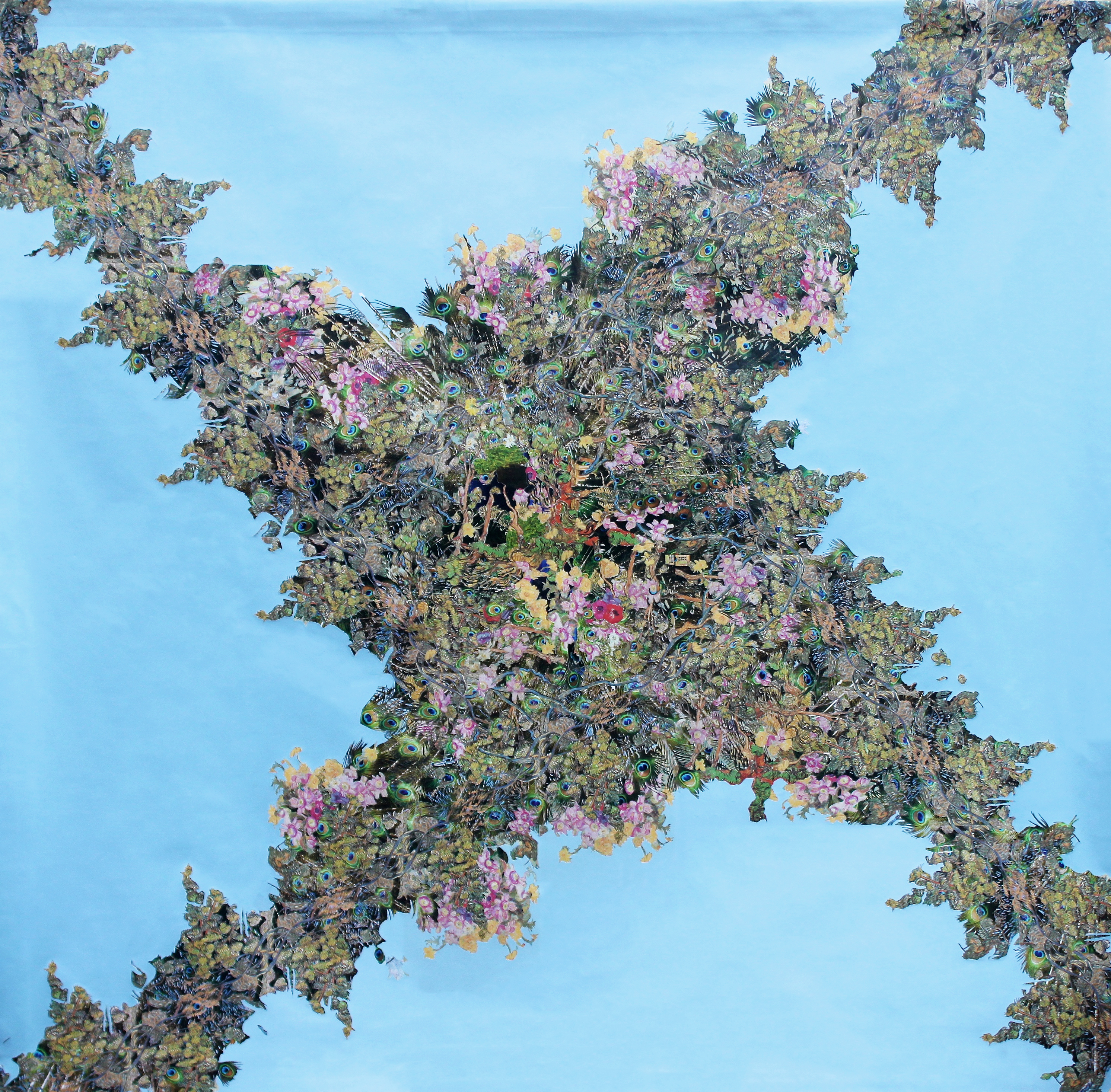 8ft x 8ft, cut paper and fabric on canvas, 2014